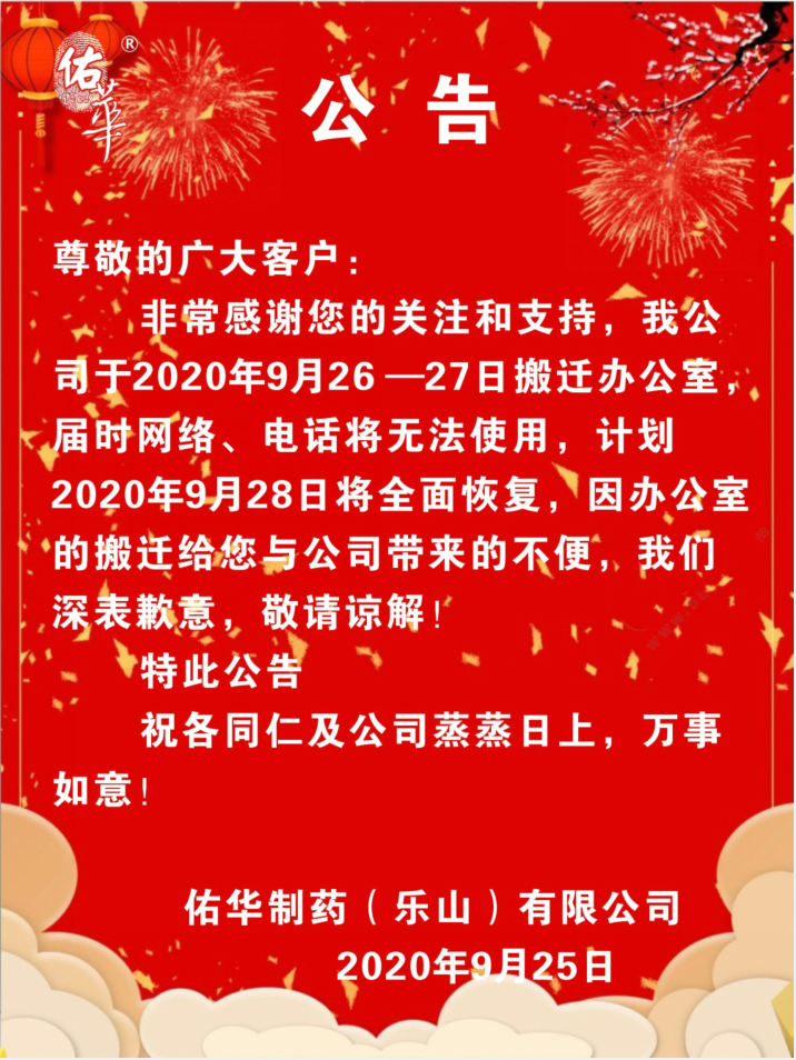 熱烈祝賀佑華制藥辦公區喬遷新址