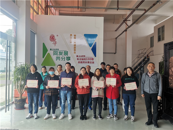 2022年4月18日,佑華制藥(樂山)有限公司培訓中心主任暨總經理王志良,在公司辦公樓大廳為公司2021年度項目制培訓學員代表頒發了結業證書,至此,整個項目制培訓圓滿結束。
